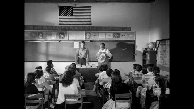 Meanwhile, the sheriff gets word that Miguel is breaking the law in keeping the children from school, so he gets in his car and drives up to Cordova. Tod is playing baseball with the children in the yard and Miguel ends recess quickly and sends everyone back inside so he can speak to the sheriff.